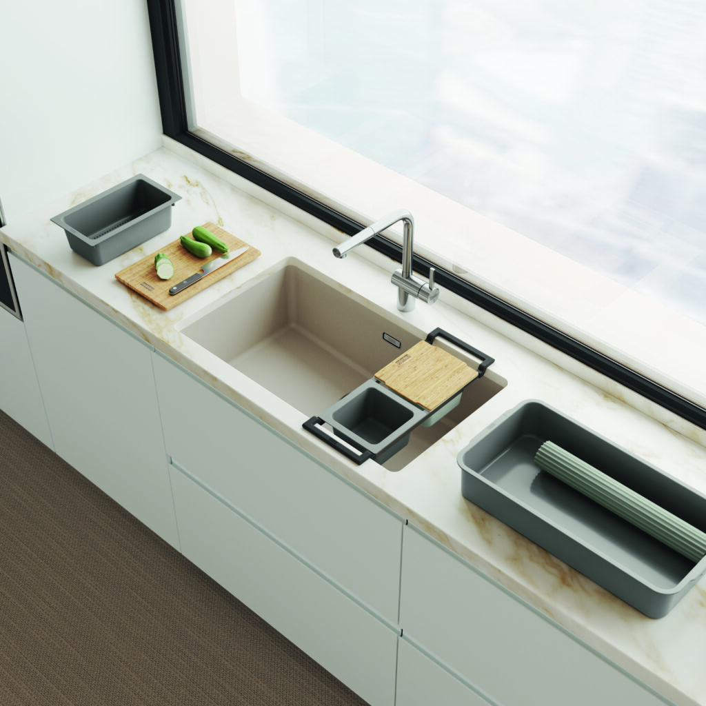 Daarnaast groeit de vraag naar multifunctionele oplossingen die werkruimte efficiënter maken. Producten zoals de Box Center-spoelbak met geïntegreerde accessoires en het All-In systeem creëren slimme werkzones.
