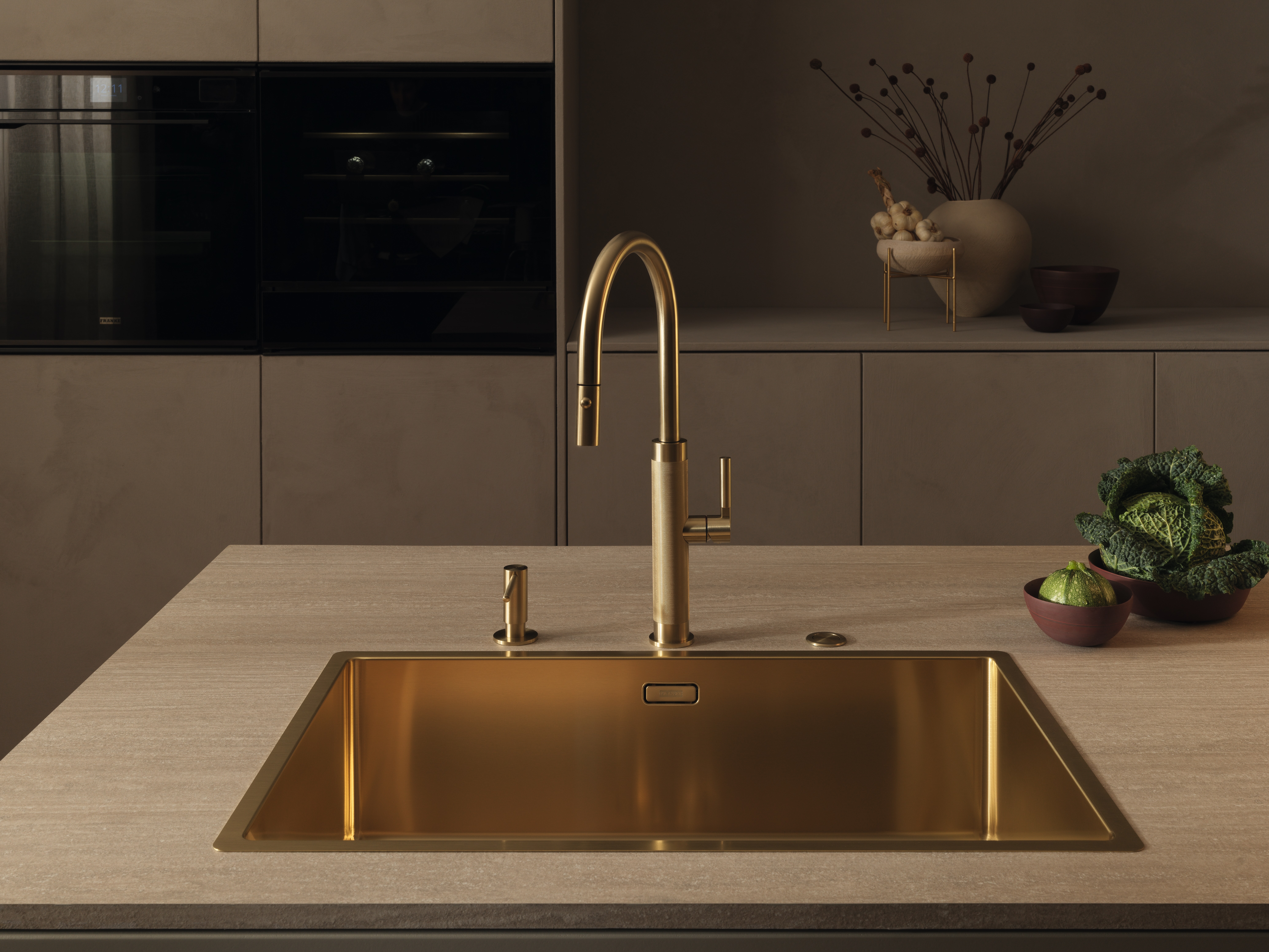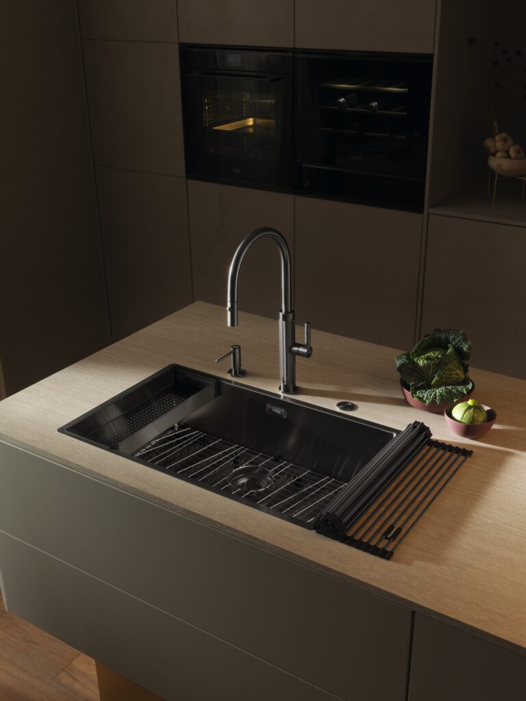 Een opvallende trend is de groeiende behoefte aan personalisatie. Kranen, spoelbak en accessoires in verschillende afwerkingen en kleuren kunnen volledig op elkaar worden afgestemd, of juist speels worden gecombineerd. Franke speelt hierop in met een uitgebreid assortiment spoelbakken, kranen en accessoires die mix & match toepassen tot een harmonieus geheel. Van minimalistische RVS-varianten tot warme tinten en matte afwerkingen: de keuken wordt steeds meer een verlengstuk van persoonlijke stijl.