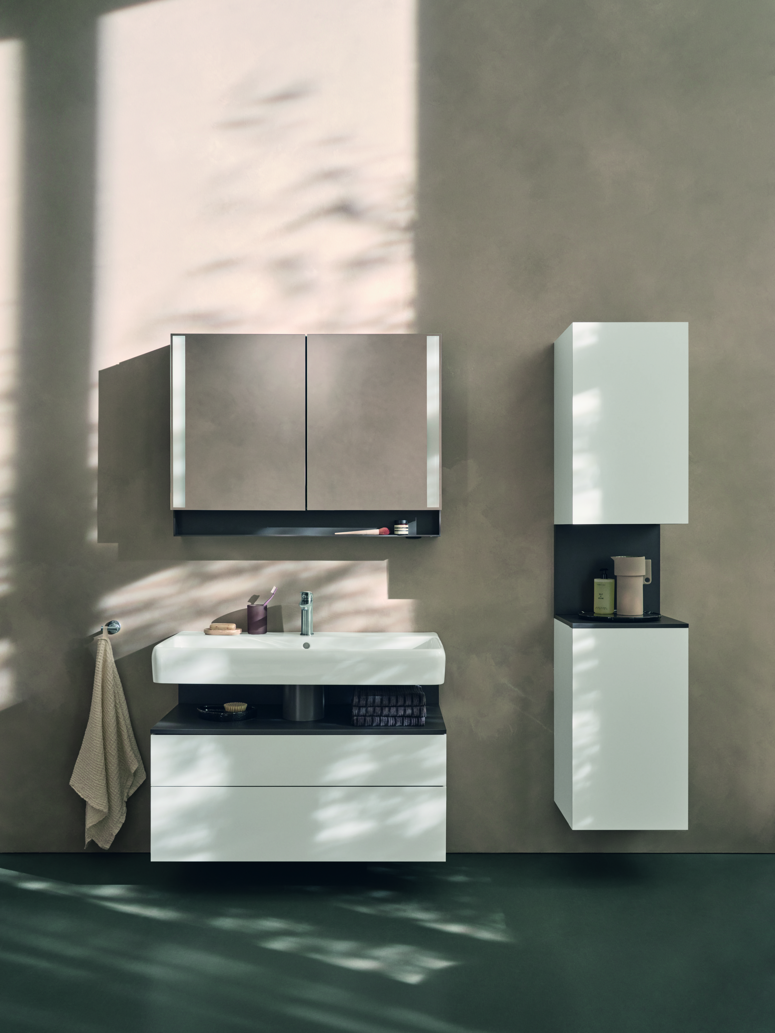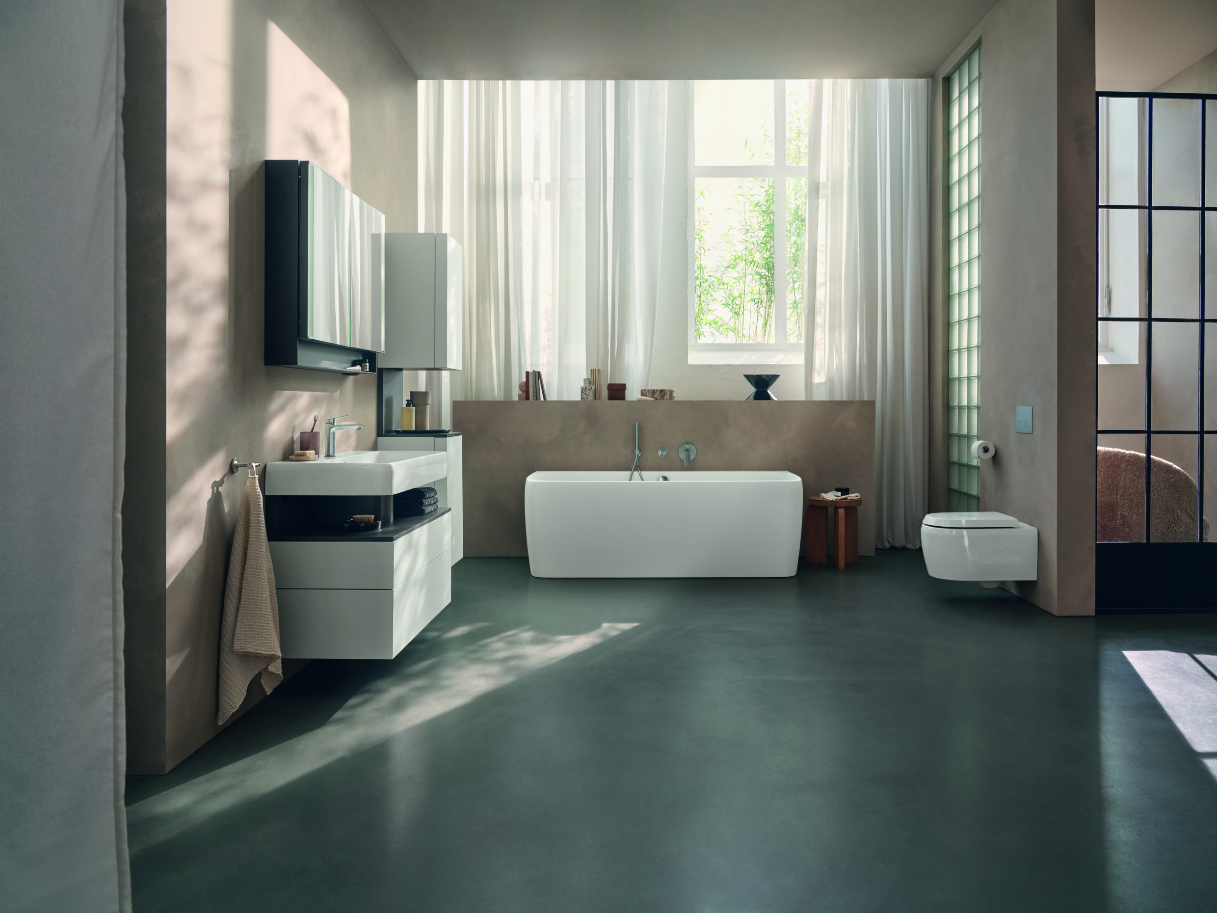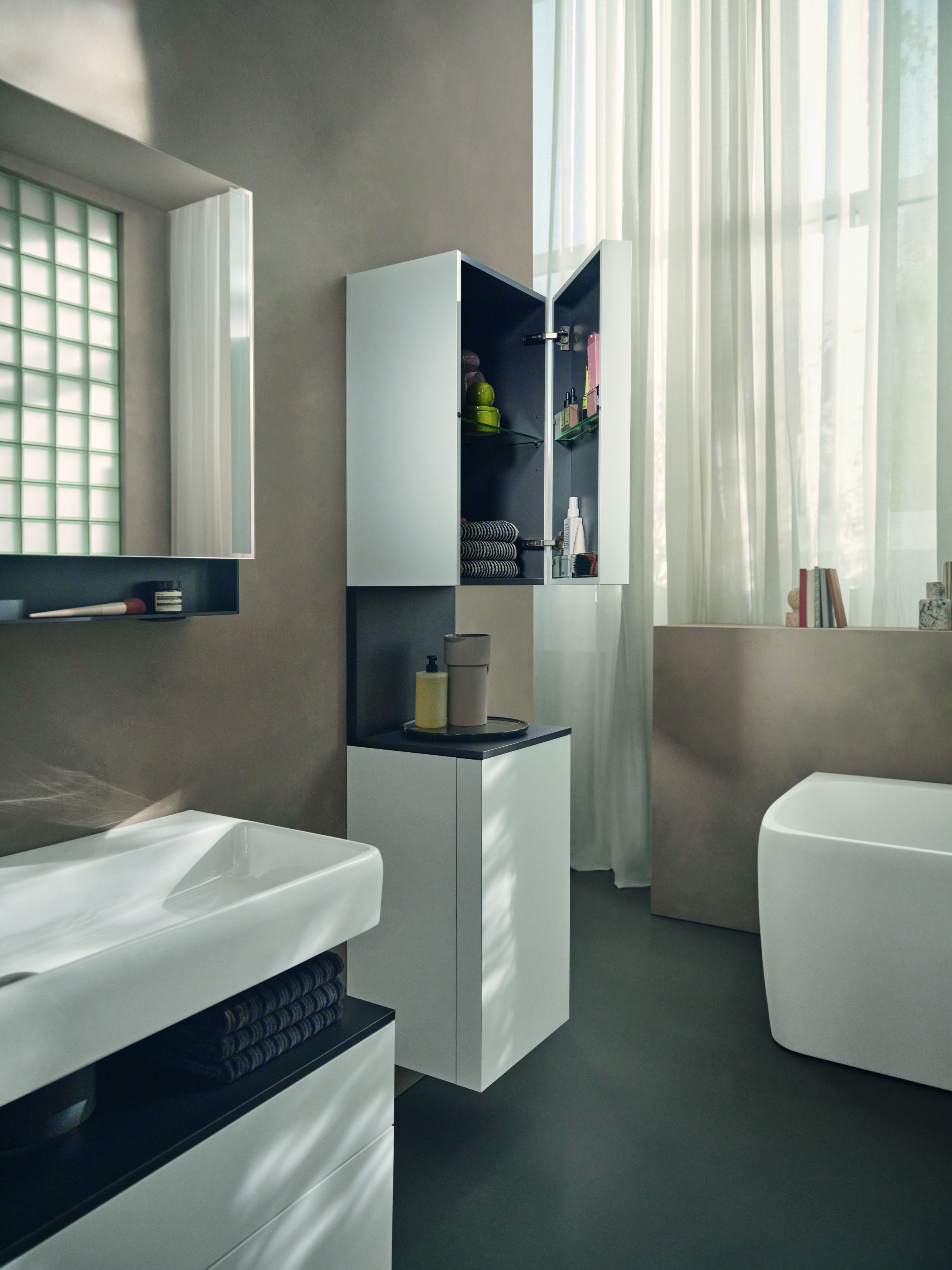 Hoe harmonieus de Studio F. A. Porsche Collection zich voegt in een ingetogen interieur, wordt zichtbaar in twee badkamerconcepten die deze ontwerpfilosofie direct tot leven brengen.