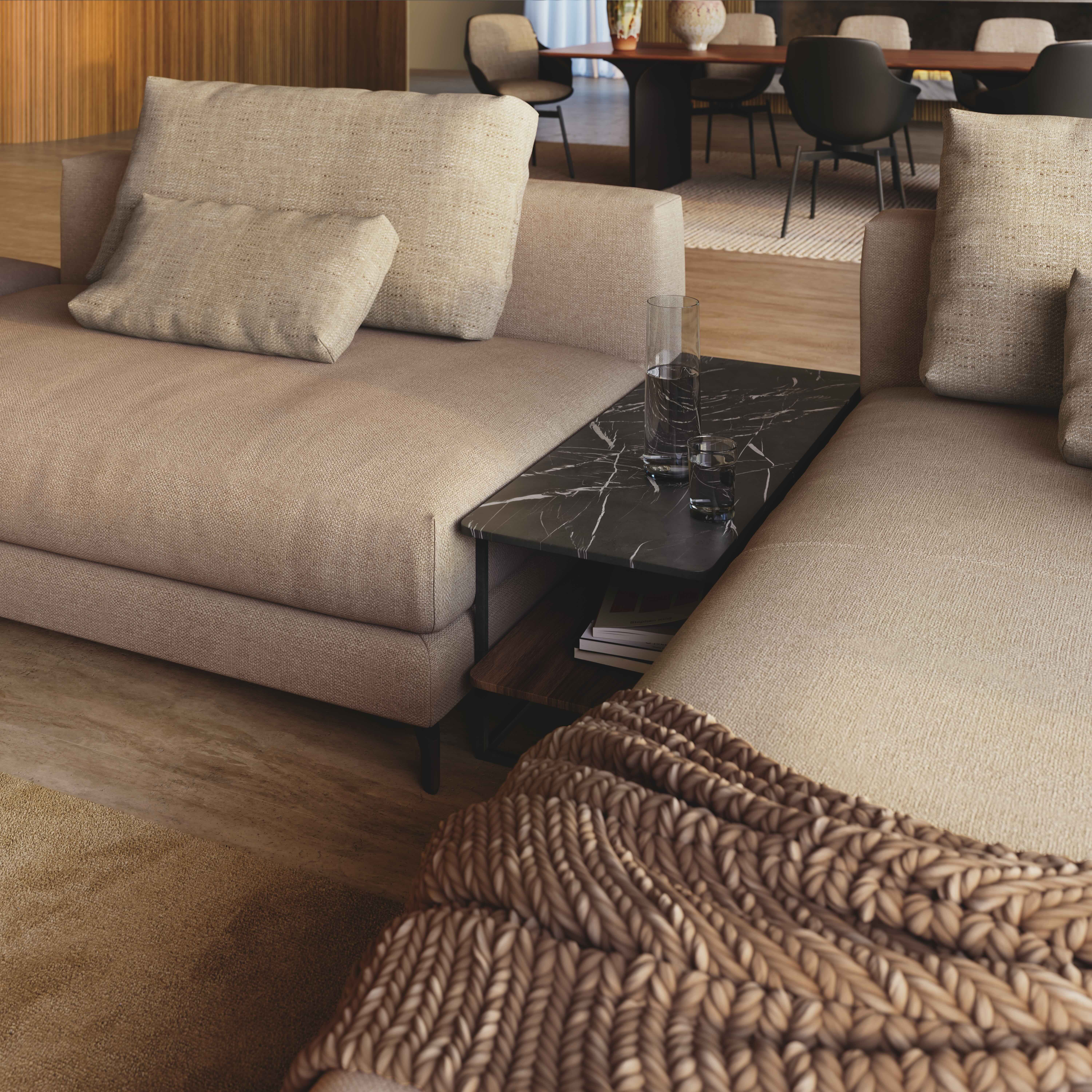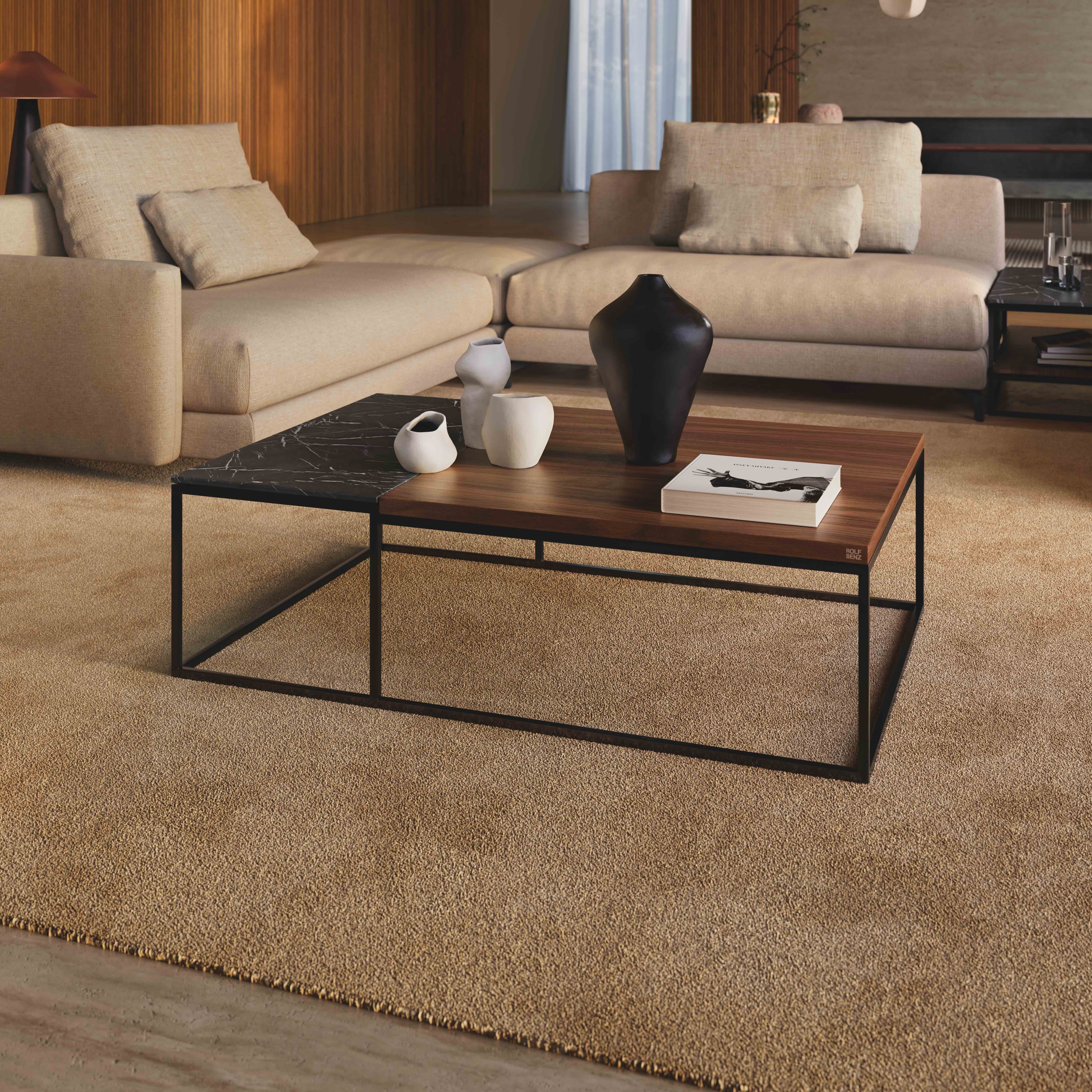 De Rolf Benz NUVOLA bank bestaat uit meerdere elementen. Elk onderdeel van het modulaire systeemprogramma staat op vier poten en kan zowel vrijstaand als gekoppeld worden toegepast. Zo ontstaat maximale flexibiliteit: van een compacte opstelling tot een ruim, loungeachtig woonlandschap. Het omvat zitelementen in diverse afmetingen, met en zonder armleuningen, evenals banken zonder rugleuning. Indelingen kunnen op elk moment worden gewijzigd, uitgebreid of opnieuw samengesteld. Bijpassende tafeltjes versterken het open karakter en ondersteunen een transparante, luchtige ruimtearchitectuur.