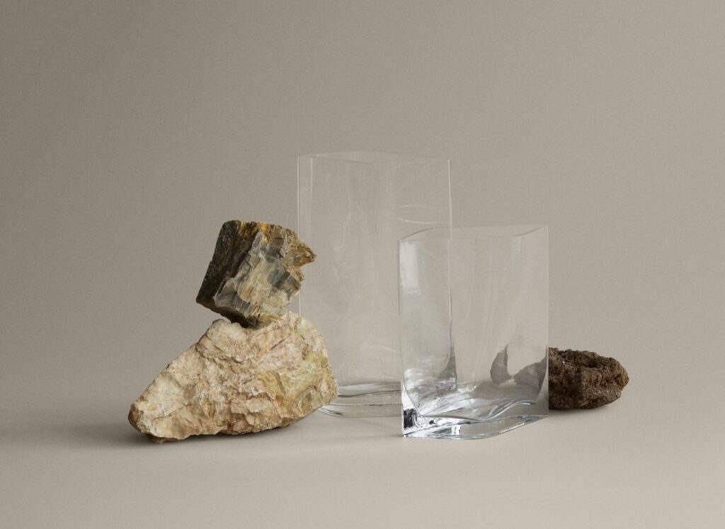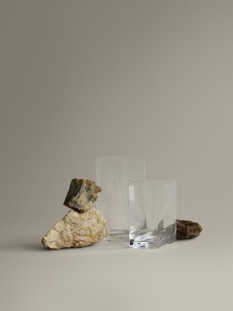 Elk DUASIS vaas is met de hand vervaardigd uit glas, waardoor elk exemplaar een uniek object is. De collectie is verkrijgbaar in de kleuren Ocean Cavern, Desert Sage en Clear en omarmt reflectie, licht en kleur als actieve componenten van het ontwerp. Of het nu gaat om een sculpturaal middelpunt of een subtiel accent, DUASIS integreert zich moeiteloos en op natuurlijke wijze in zijn omgeving.
