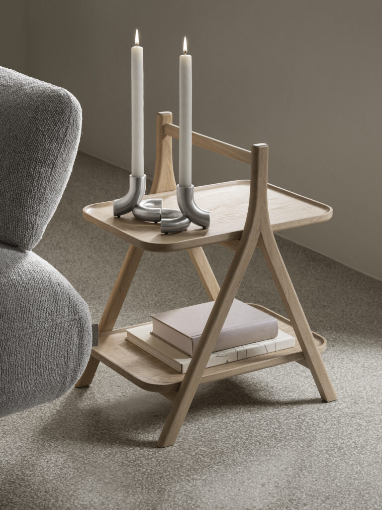 De ETA-bijzettafel, ontworpen door de Zweedse ontwerper Anton Björsing, is een veelzijdig meubelstuk dat moeiteloos in verschillende ruimtes kan worden verplaatst. Met twee royale opbergvlakken en een praktisch handvat biedt het zowel mobiliteit als gebruiksgemak, ongeacht waar het wordt geplaatst.