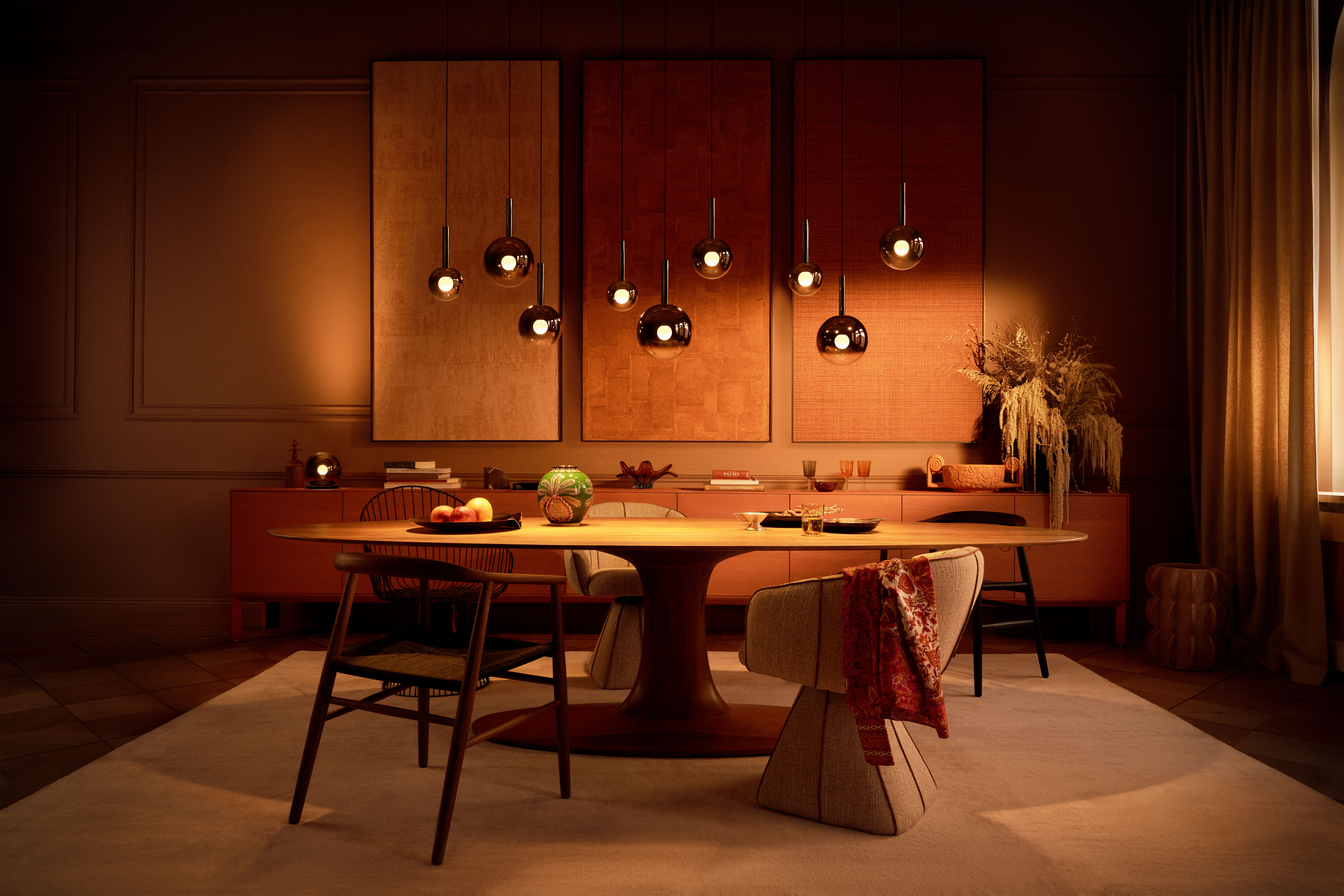 Op tafel brengen luna sogno en luna basso een elegante balans: het ene armatuur straalt naar beneden, het andere opent de ruimte naar boven. Luna pura, Occhio’s eerste draadloze armatuur, brengt de magie van licht overal tot leven.