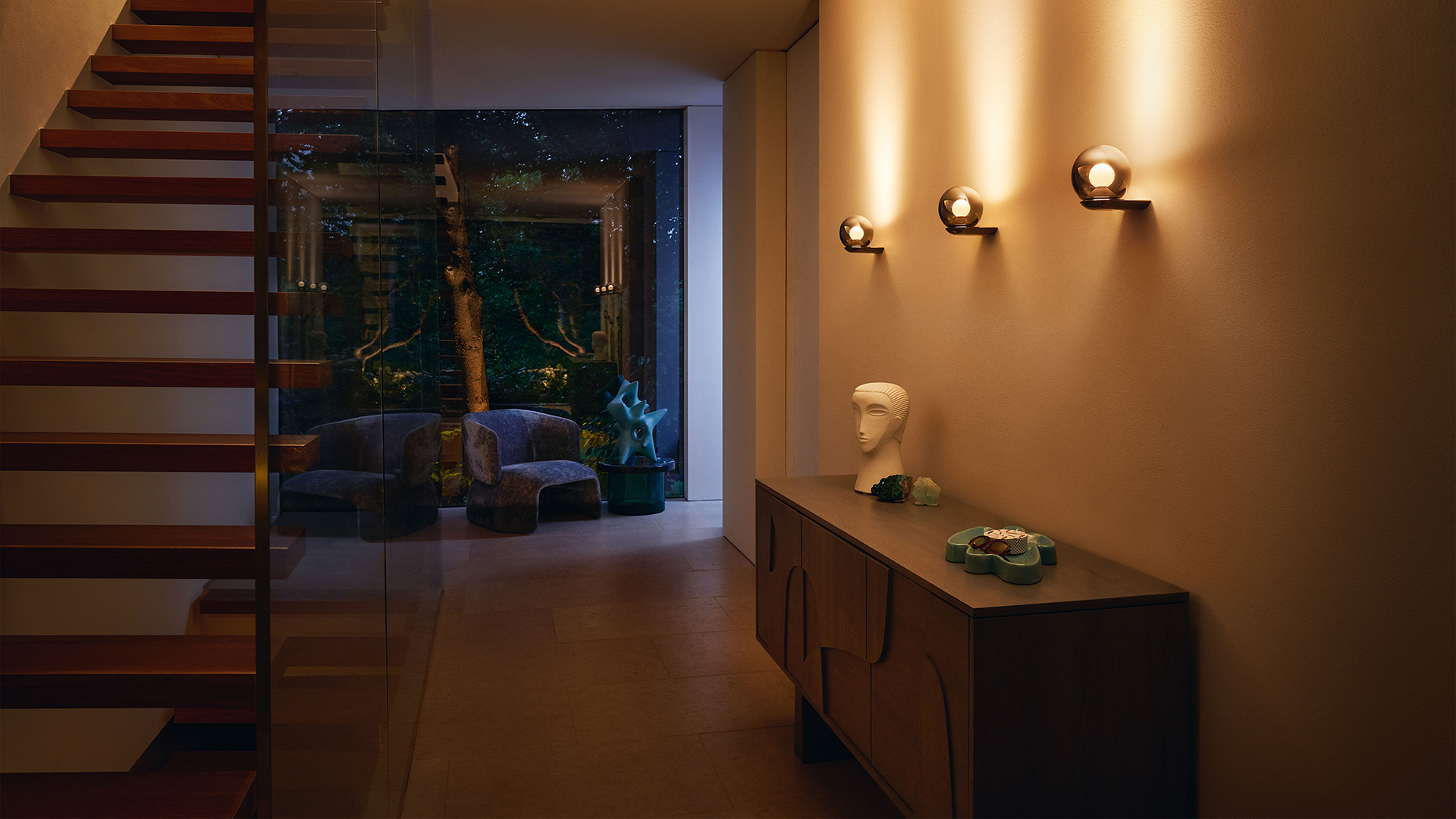 De collectie bevat sculpturale armaturen waarin techniek en esthetiek naadloos samenvloeien. Luna sospeso laat het iconische Occhio fireball-licht zweven als een hemellichaam in glas; krachtig, gericht en verblindingsvrij. Luna piena baadt in een sensuele gloed, terwijl luna scura met haar spiegelende bol een spel van reflectie en mysterie op de wand tovert. Luna parete raakt zonder woorden, haar licht ademt magie in elke ruimte.
