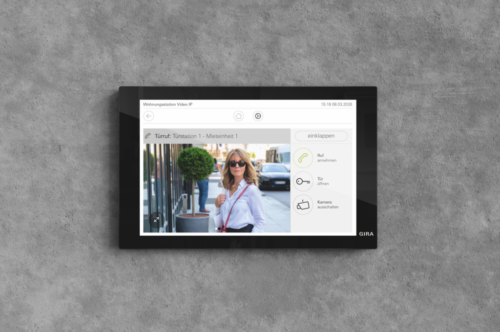 Voor binnen zijn er twee opties: het Gira Video IP binnenstation met 7-inch full-touch display of de nieuwe Gira G1, die tevens fungeert als centrale bediening voor het complete smart home. Beide uitvoeringen, verkrijgbaar in glas wit of glas zwart, integreren naadloos in het interieur en ondersteunen functies zoals oproepdoorschakeling, beeldopslag en toegang op afstand.