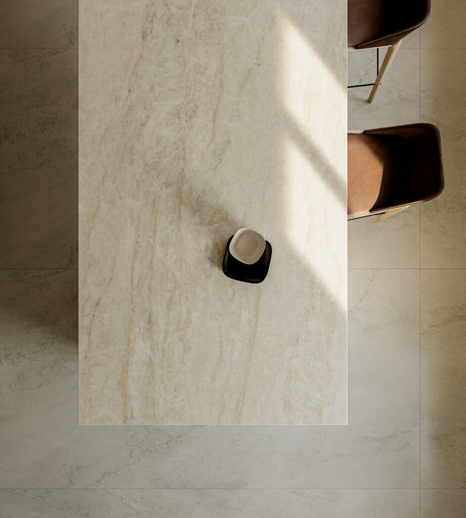 Taj Mahal is uitgegroeid tot een van de meest gevraagde steensoorten in het interieur van dit moment. De warme crème- en zandtinten, gecombineerd met een subtiele goudadering, maken het materiaal een favoriet in luxe keukens en serene badkamers.