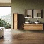 Kitkat Mini, het slanke broertje van de originele Kitkat-tegel, leent zich bij uitstek voor ruimtes waar detail en ritme het verschil maken. De nieuwe tinten versterken dit effect en komen bijzonder mooi tot hun recht op organische vormen zoals gebogen wanden, inloopdouches of ronde bars, een duidelijke verwijzing naar de blijvende populariteit van zachte lijnen en architectonische rondingen.